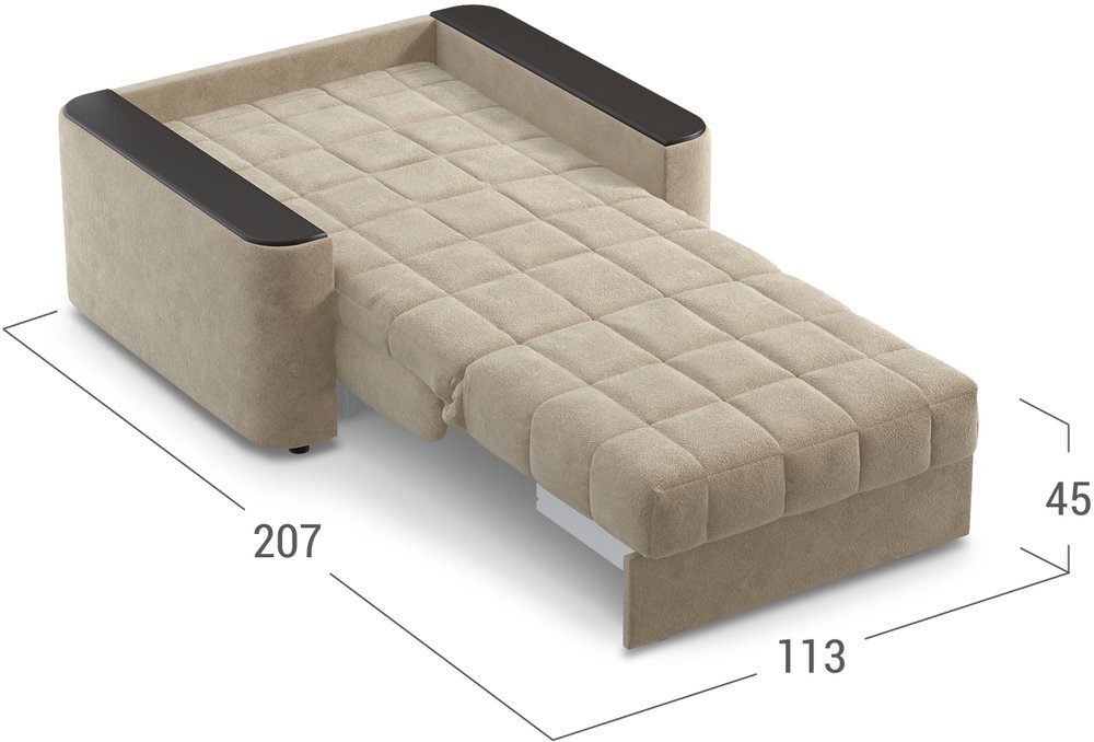 Объемные подлокотники — стильная деталь, отлично вписывающая кресло-кровать в интерьер современной городской квартиры.