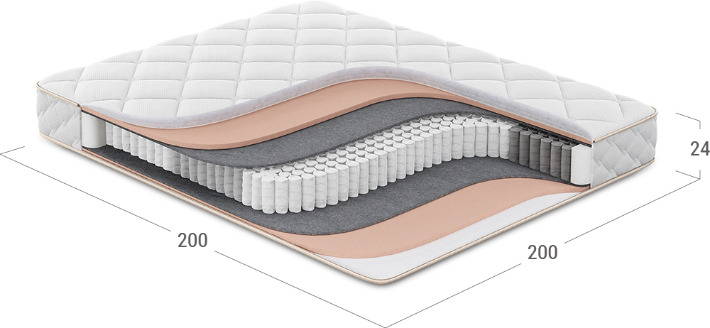Средней степени жесткости матрас, в основу которого положен независимый пружинный блок (НПБ). Обратите внимание: чем большее количество пружин приходится на спальное место, тем точнее оказывается поддержка спины, а значит, более комфортным становится матрас и Ваш сон.