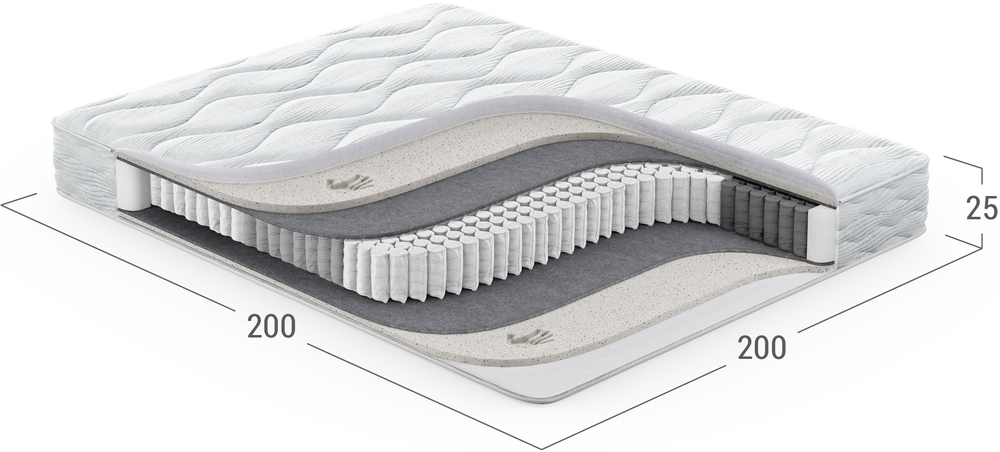 Повышает жесткость и плотность спального места, а также обеспечивает оптимальный воздухообмен благодаря объемной структуре материала. Улучшает эксплуатационные показатели матраса, не давая пружинному блоку механически воздействовать на комфортные слои.