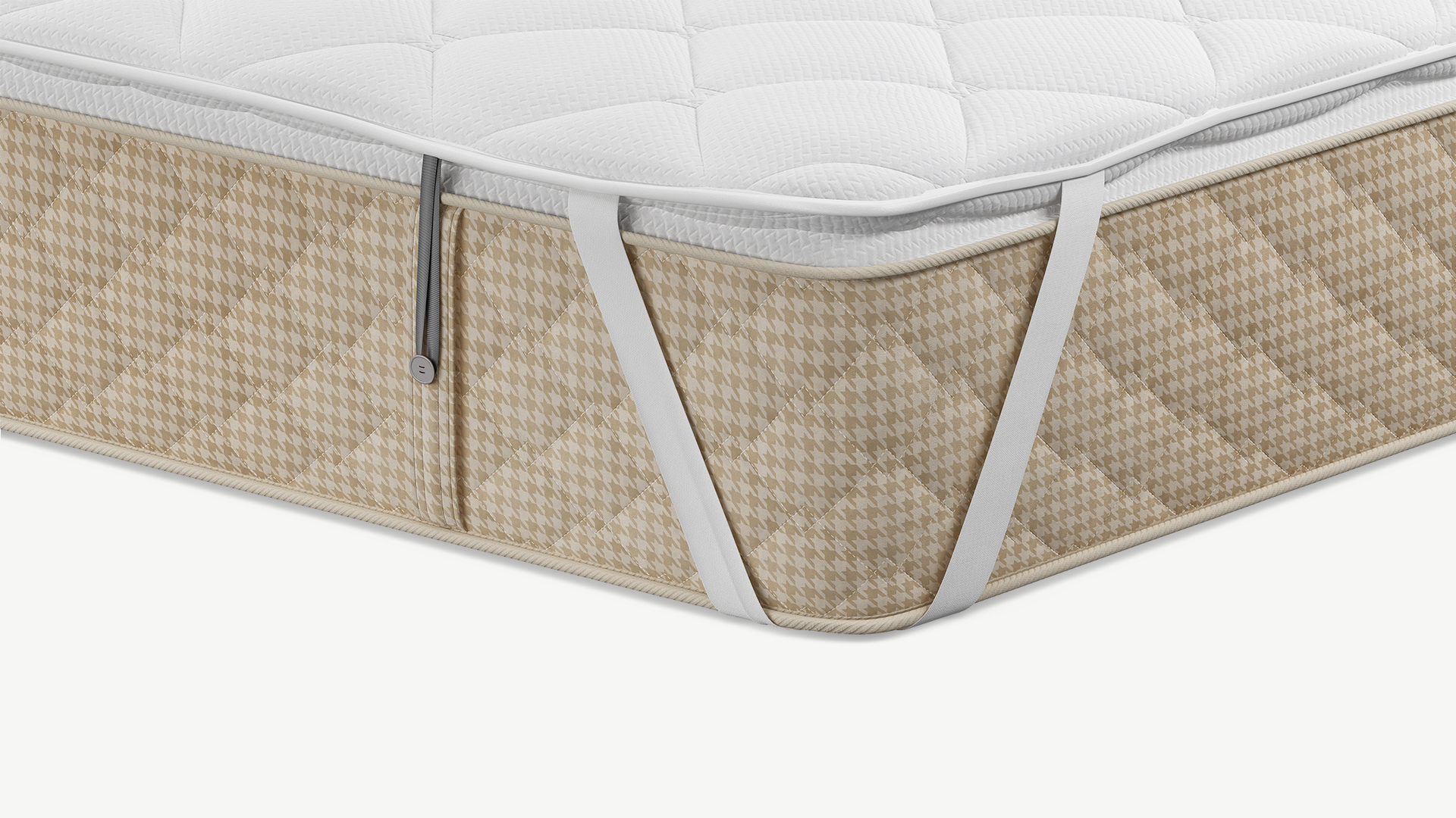 Дополнительно на топпере предусмотрены эластичные петли — для матрасов MOON в комплектациях Comfort и Prestige, оснащенных системой крепления на пуговицы по бокам.