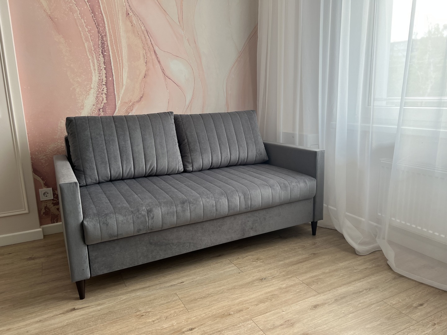 Достоинства: Есть ножки (т.е. под диваном легко убираться), раскладной механизм без колесиков (пол не царапает), упругий и плотный диван, очень удобно и красиво! Диван супер!
