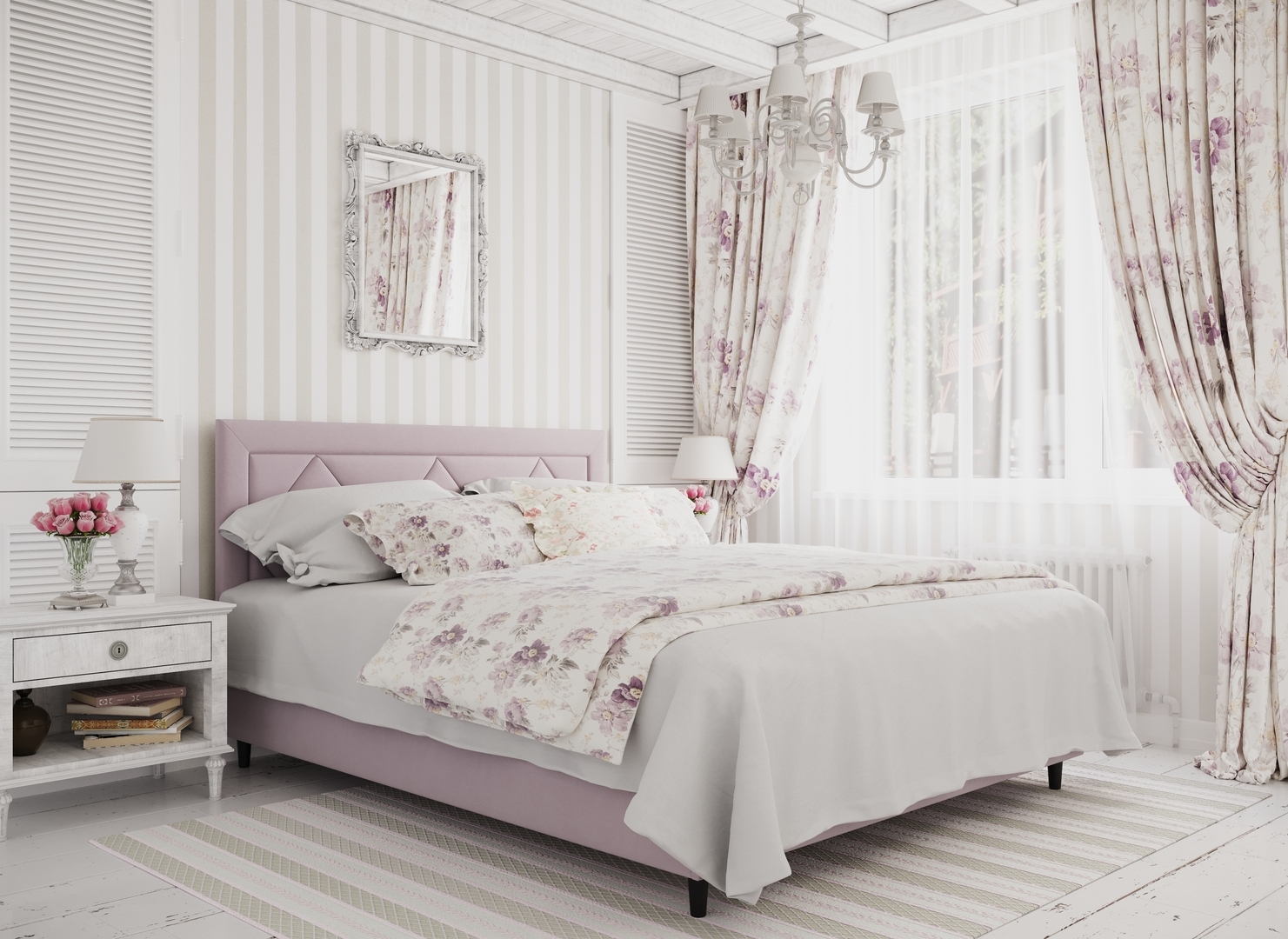 Создать гармоничный интерьер и завершить образ спальни помогут дополнительные аксессуары, например: тумбы, банкетки, подушки.