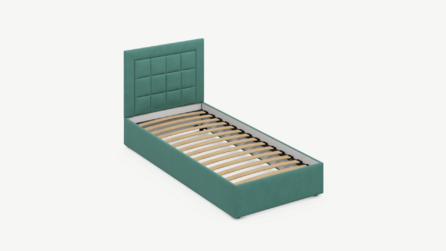Изголовье декорировано рельефным рисунком стежки в крупный квадрат, получившим особую фактуру за счет глубины шва.