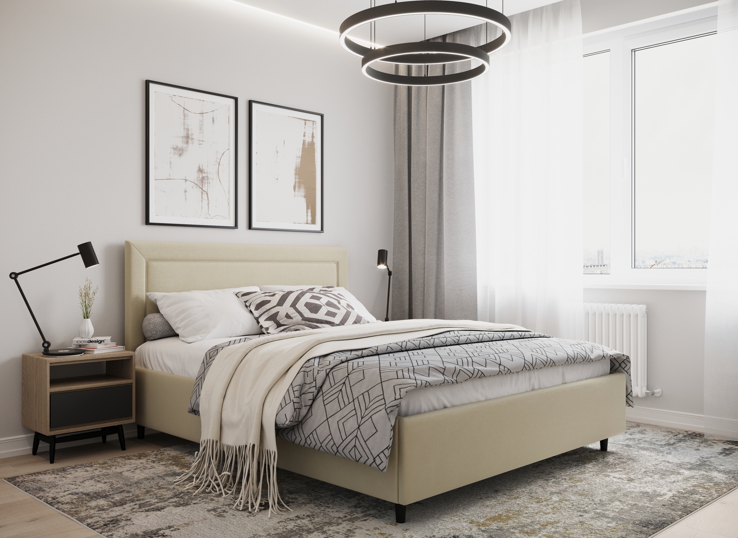 Создать гармоничный интерьер, а также целостный образ спальни помогут дополнительные аксессуары - например, тумбы, банкетки, подушки.