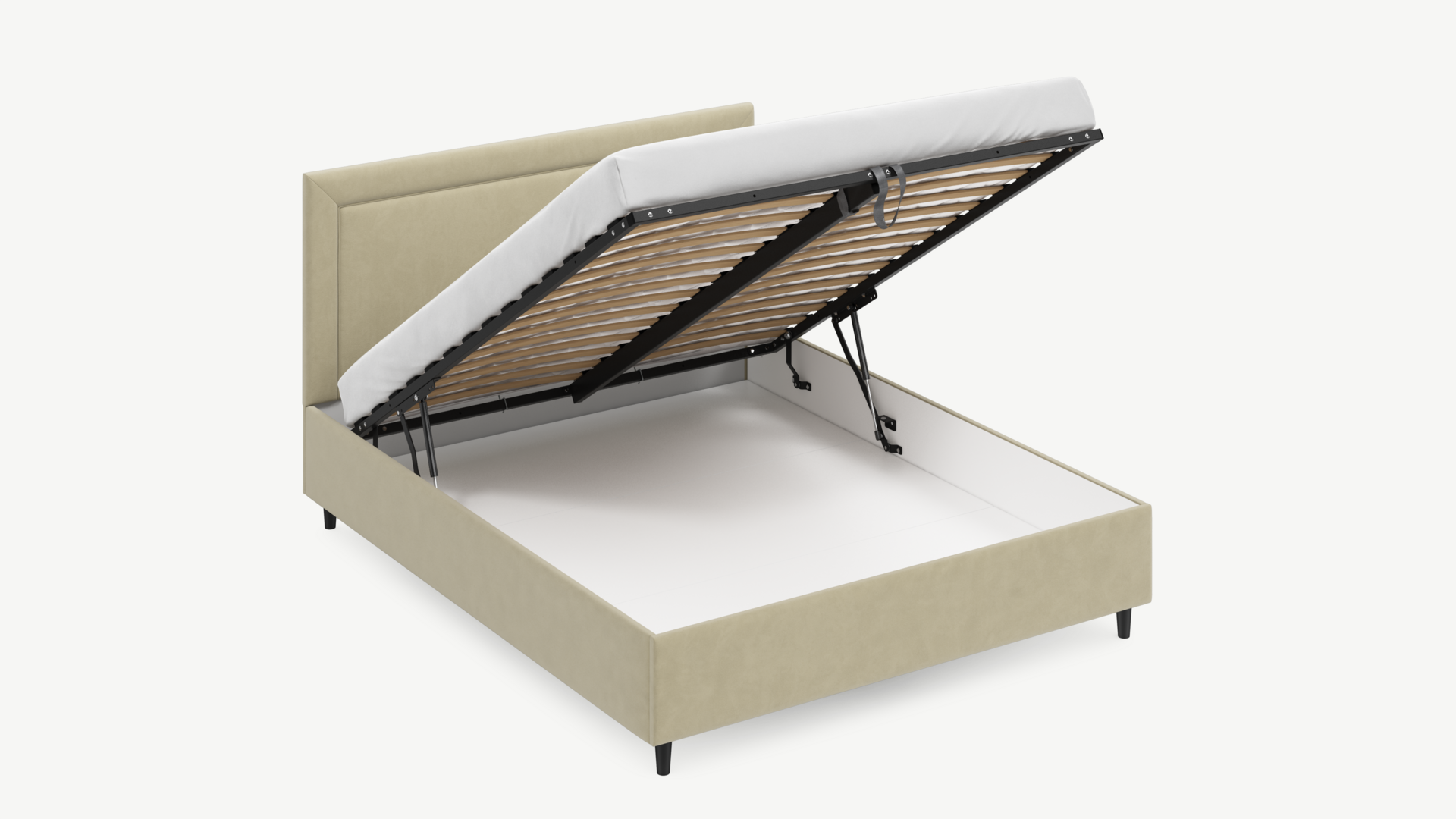Регулируемый подъемный механизм с газовыми амортизаторами позволяет плавно и бесшумно поднимать и опускать спальное место.