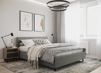 Фактура обивочного материала подбирается дизайнерами с учетом технологических и стилевых особенностей кровати.