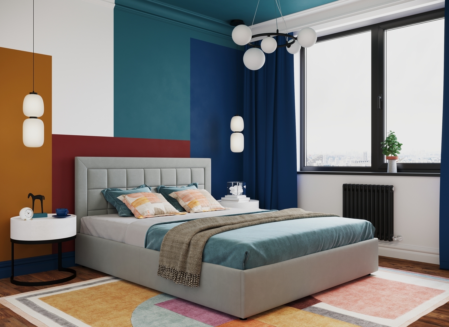 Создать гармоничный интерьер и завершить образ спальни помогут дополнительные аксессуары, например: тумбы, банкетки, подушки.