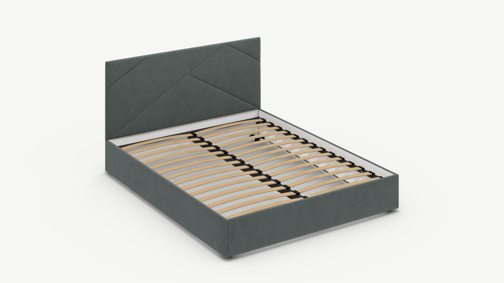MOON FAMILY 1257 привлекает внимание оригинальным исполнением: широкие полосы ткани эффектно пересекают периметр изголовья, создавая на нем графический орнамент. Элегантным и практичным акцентом служат скрытые карманы, расположенные по его углам. Лаконичные формы объемных царг создают единый гармоничный образ и фокусируют внимание на центральном текстурном элементе кровати.