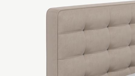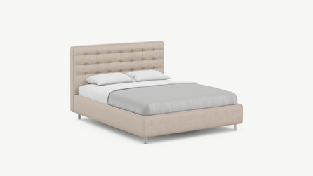 Оформите образ кровати, выбирая обивочный материал, который подчеркнет звучание Вашей спальни и отразит Ваш вкус. Обратите внимание на однотонный гладкий велюр, который усиливает объемную фактуру стежки.