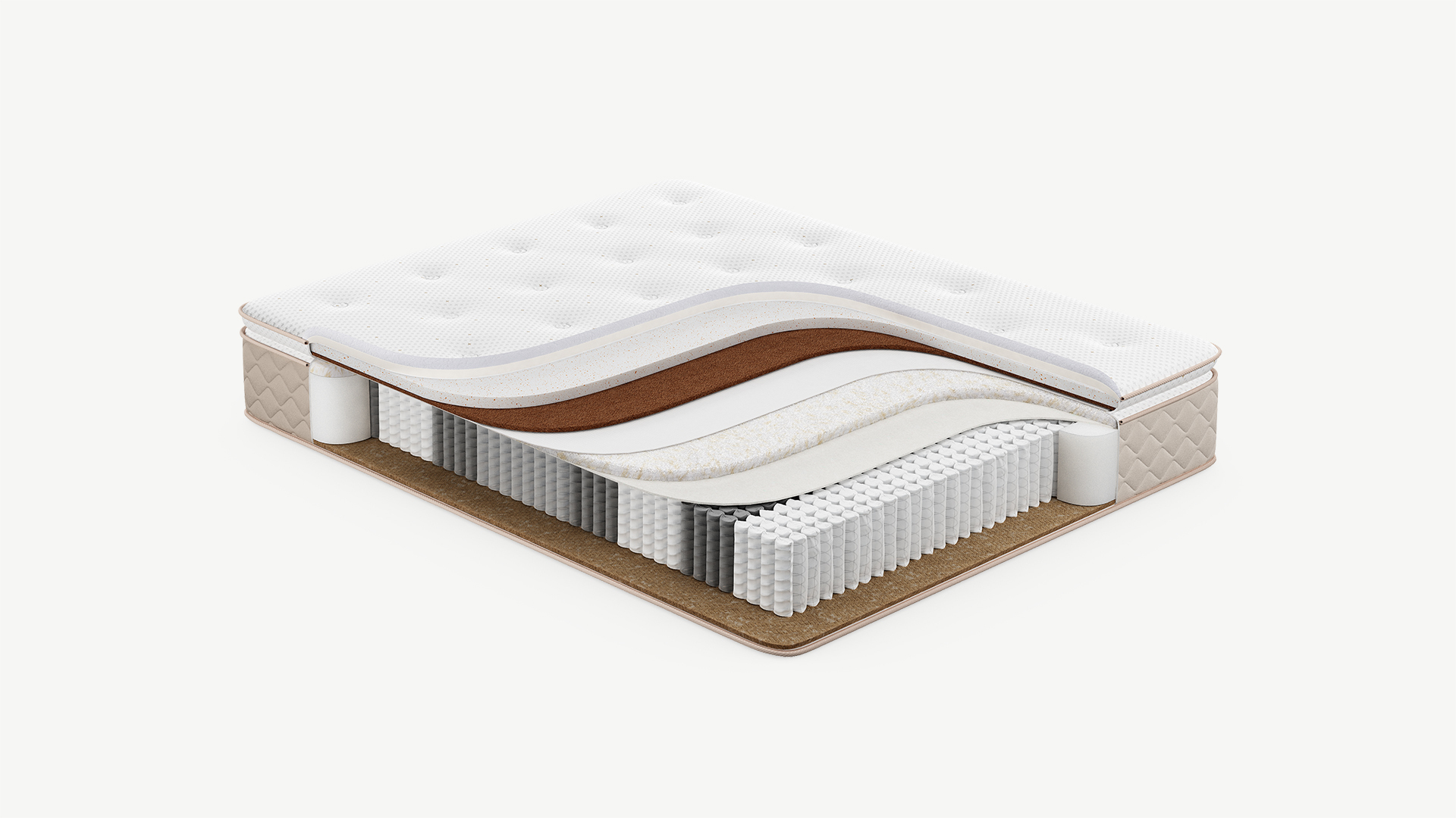 Надежно изолирует комфортные слои от соприкосновения с пружинным блоком и защищает материалы наполнения матраса от износа.
