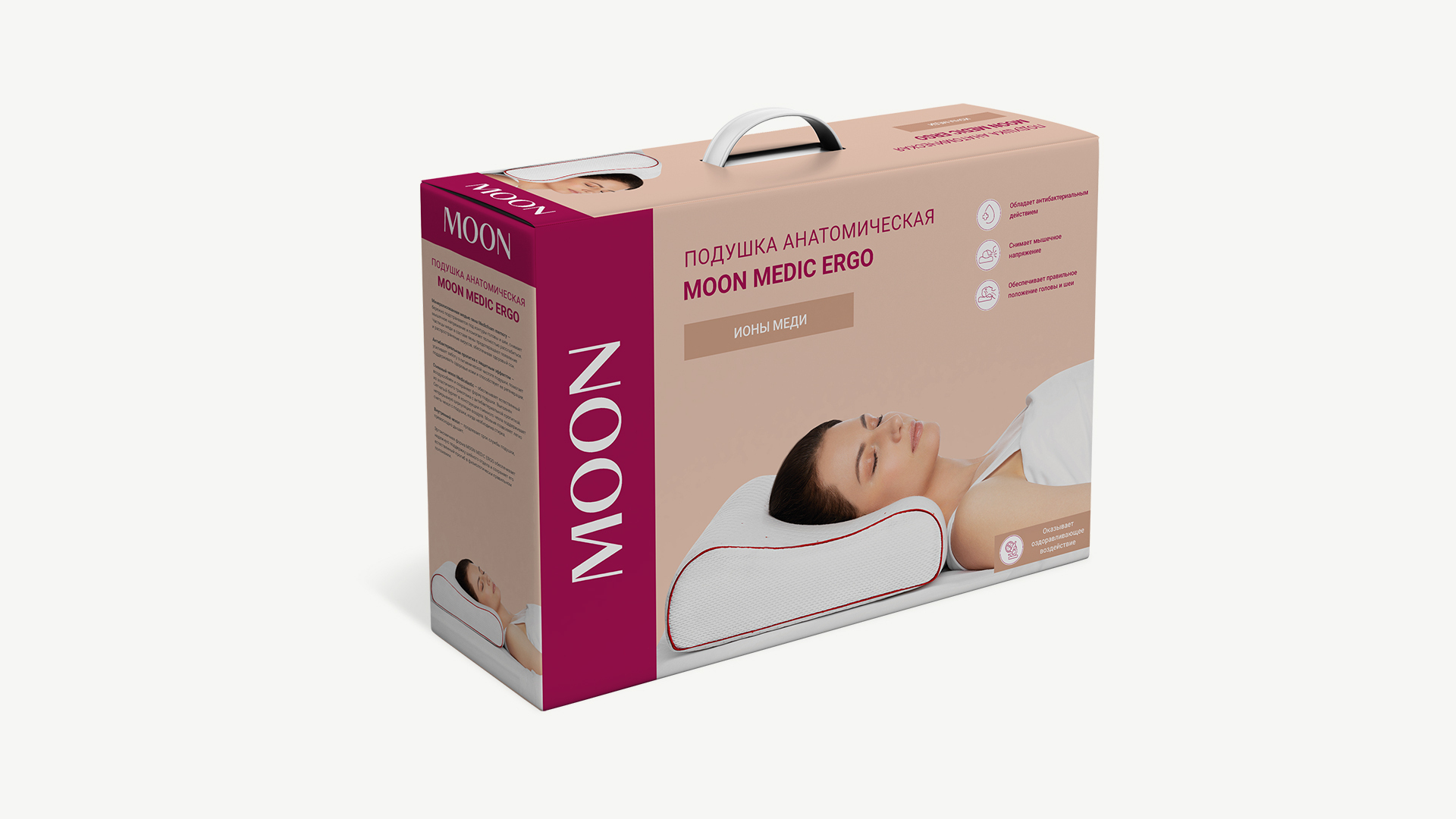 MOON MEDIC ERGO обеспечивает комфортный и здоровый сон. Анатомическая подушка создает защитный барьер, который не оставляет вирусам и бактериям ни одного шанса испортить Ваш отдых!