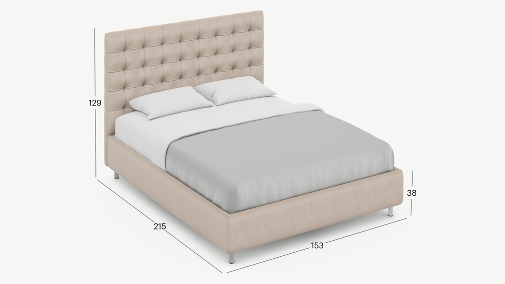 Дизайн MOON 1155 излучает обаяние и роскошь. Центральный элемент кровати, оформленный каретной стяжкой, безупречно сочетается с лаконичной геометрией царг, создавая впечатляющий рельеф. Изголовье респектабельно воплощает идею аристократической элегантности: просыпайтесь и засыпайте, подобно монаршим особам!