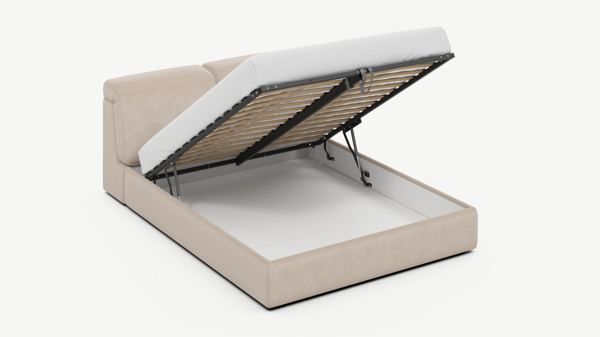 • Скрытая под основанием вместительная емкость без внутренних перегородок позволяет использовать всю площадь подкроватного пространства для хранения вещей.
