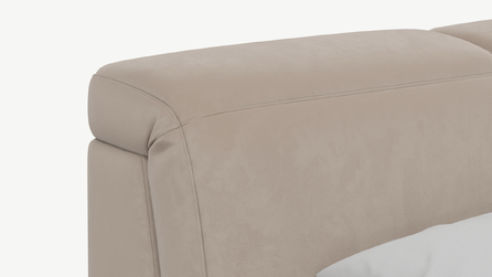 Изголовье подчеркивает эстетику MOON 1107, а также дарит дополнительный комфорт и уют спальному месту. Обратная сторона изголовья выполнена в мебельной ткани и позволяет ставить кровать в центре комнаты для зонирования пространства.